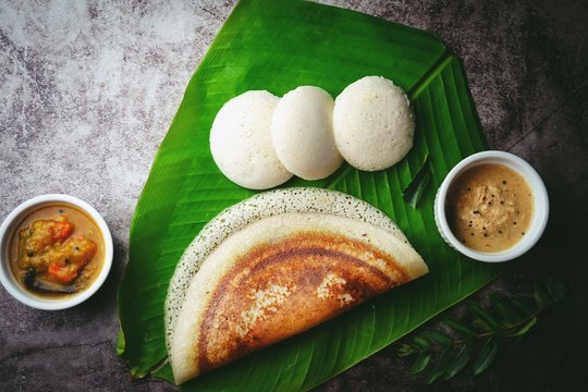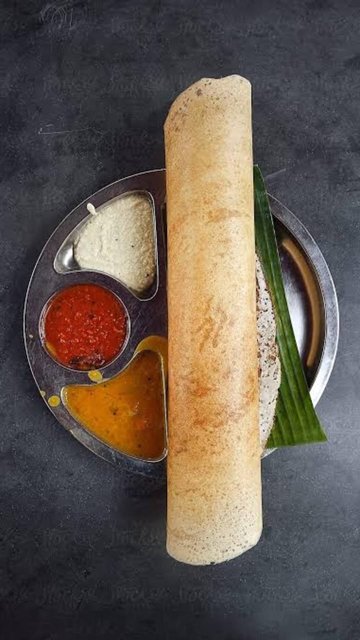 Golden-brown dosas served fresh with sambar and chutney, just like home.